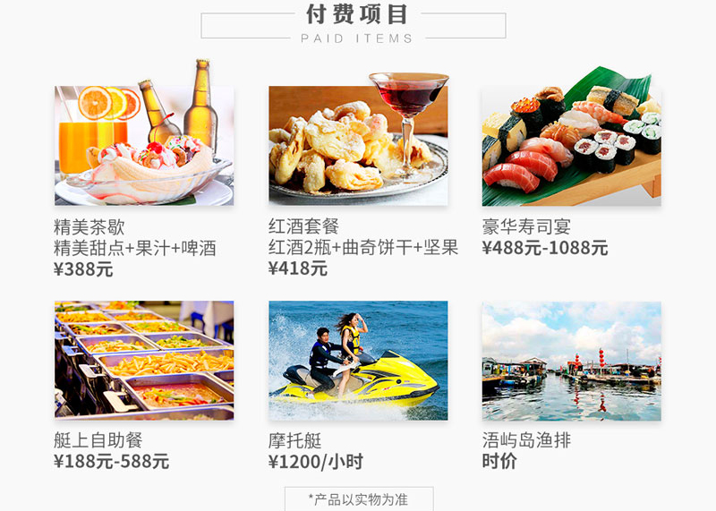 | 標(biāo)配項(xiàng)目: | 水果、漁具、零食、飲料 | 影音設(shè)備: | DVD、CD、USB音樂(lè) | ||||
